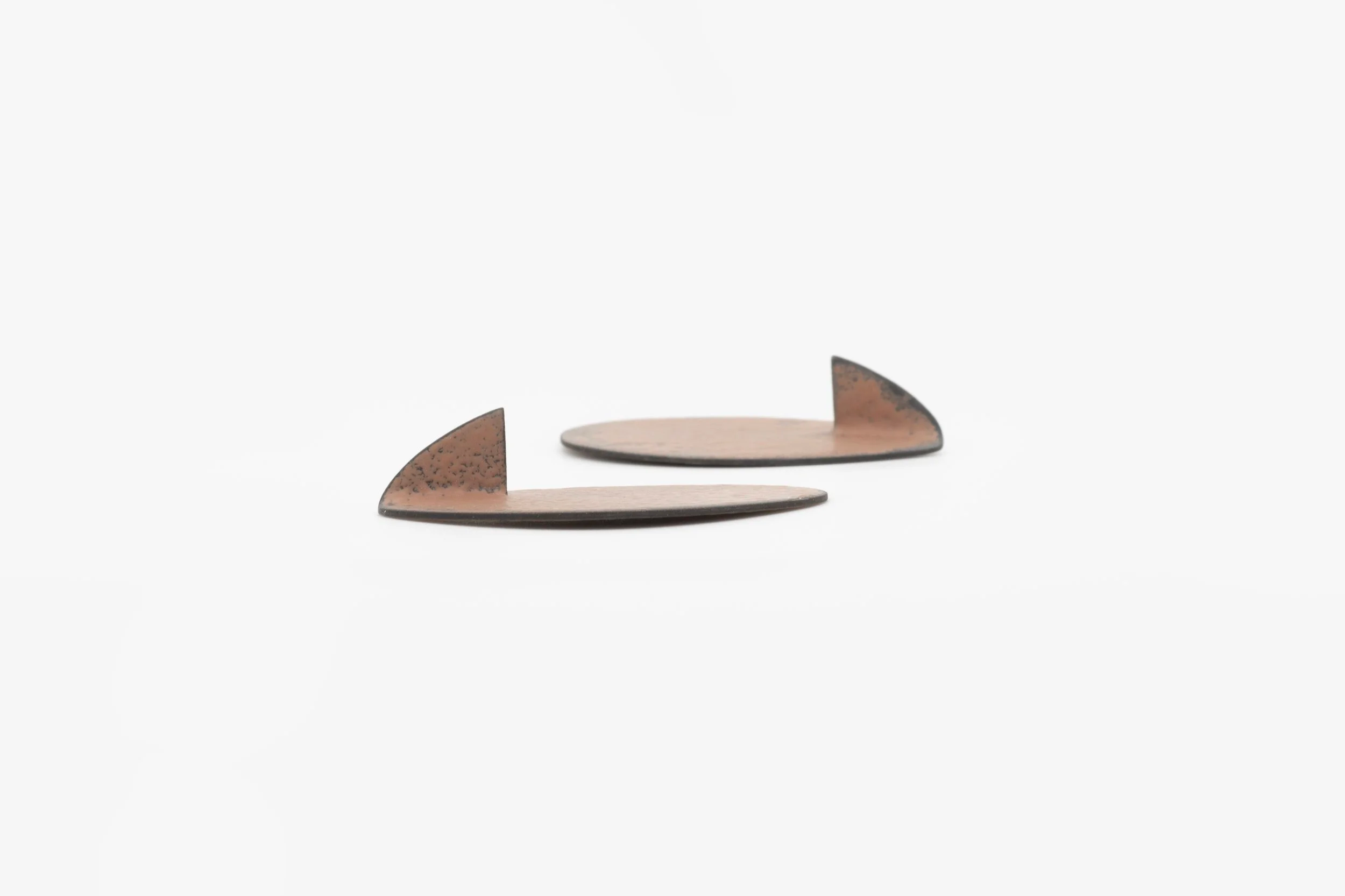 These earrings begin as folded paper studies, where simple folds create dimension and offer space for the body.